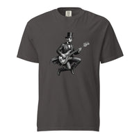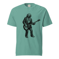 Musical t-shirts with fun graphic designs: bass-playing elephant, guitar sharks, sloth bassist & Abraham Lincoln. Unique tees for music lovers & musicians. Shop now!