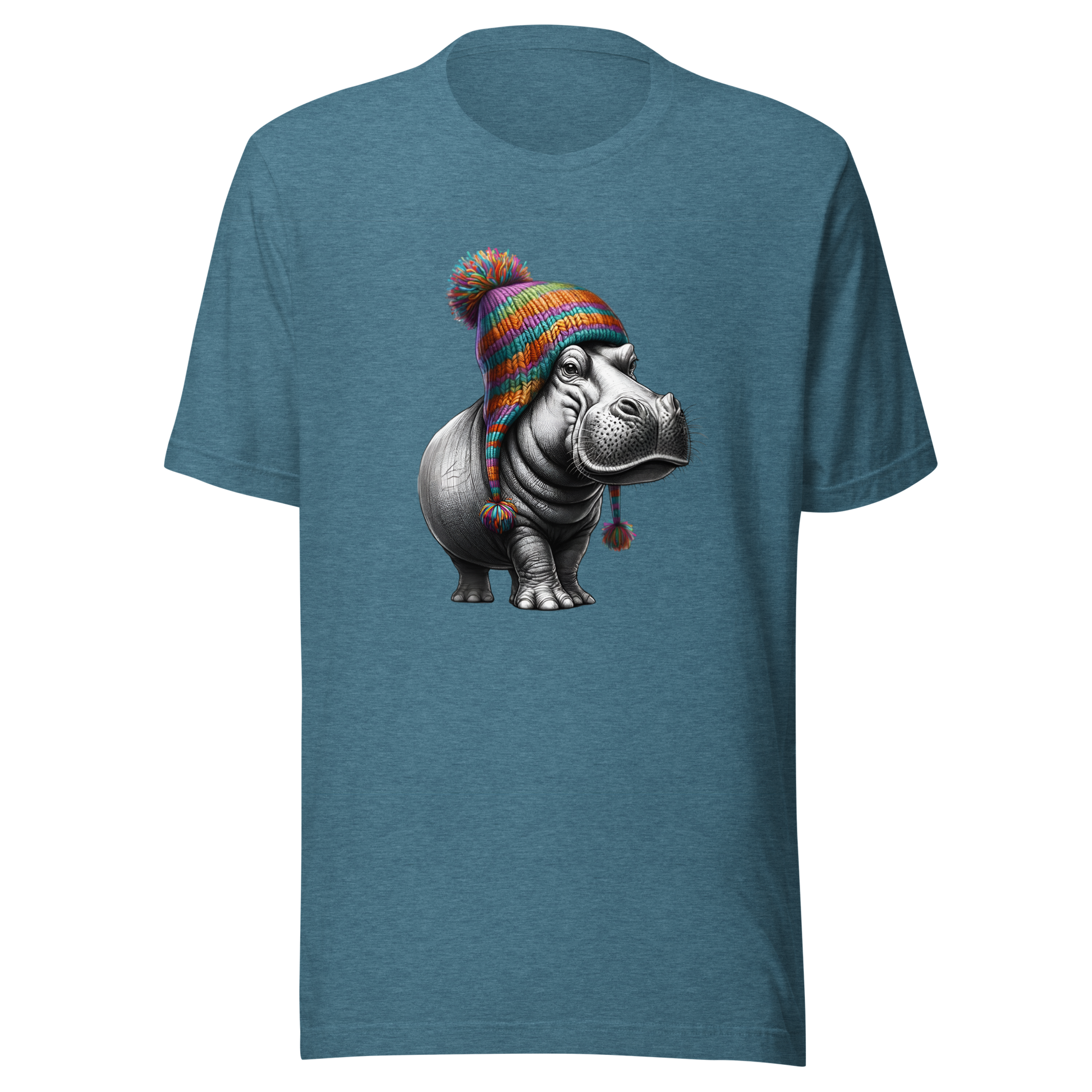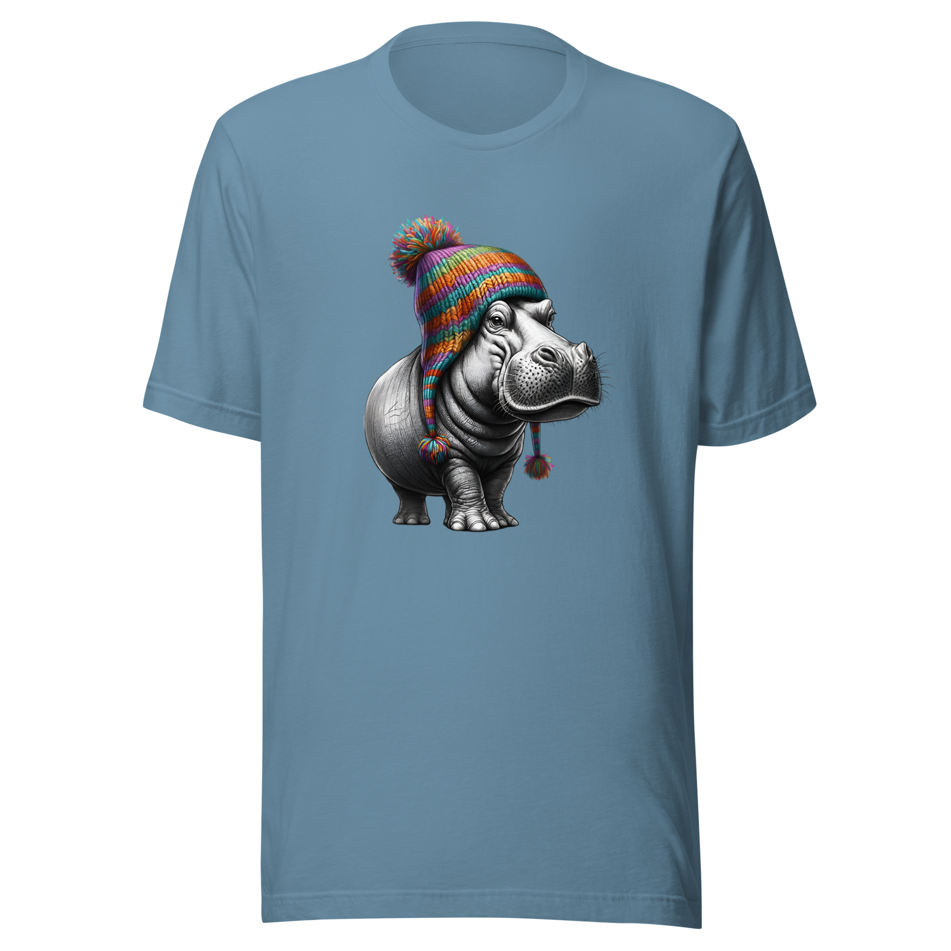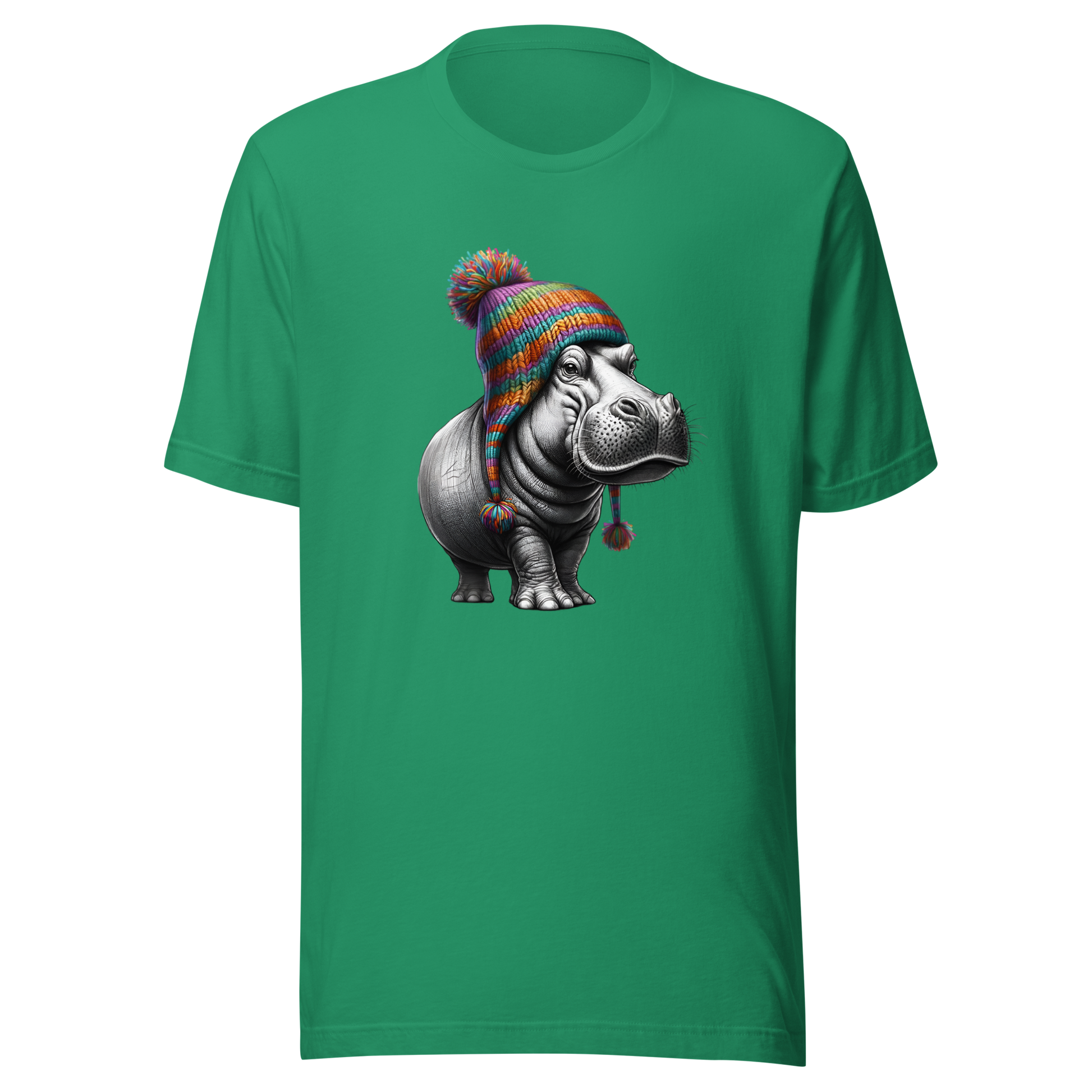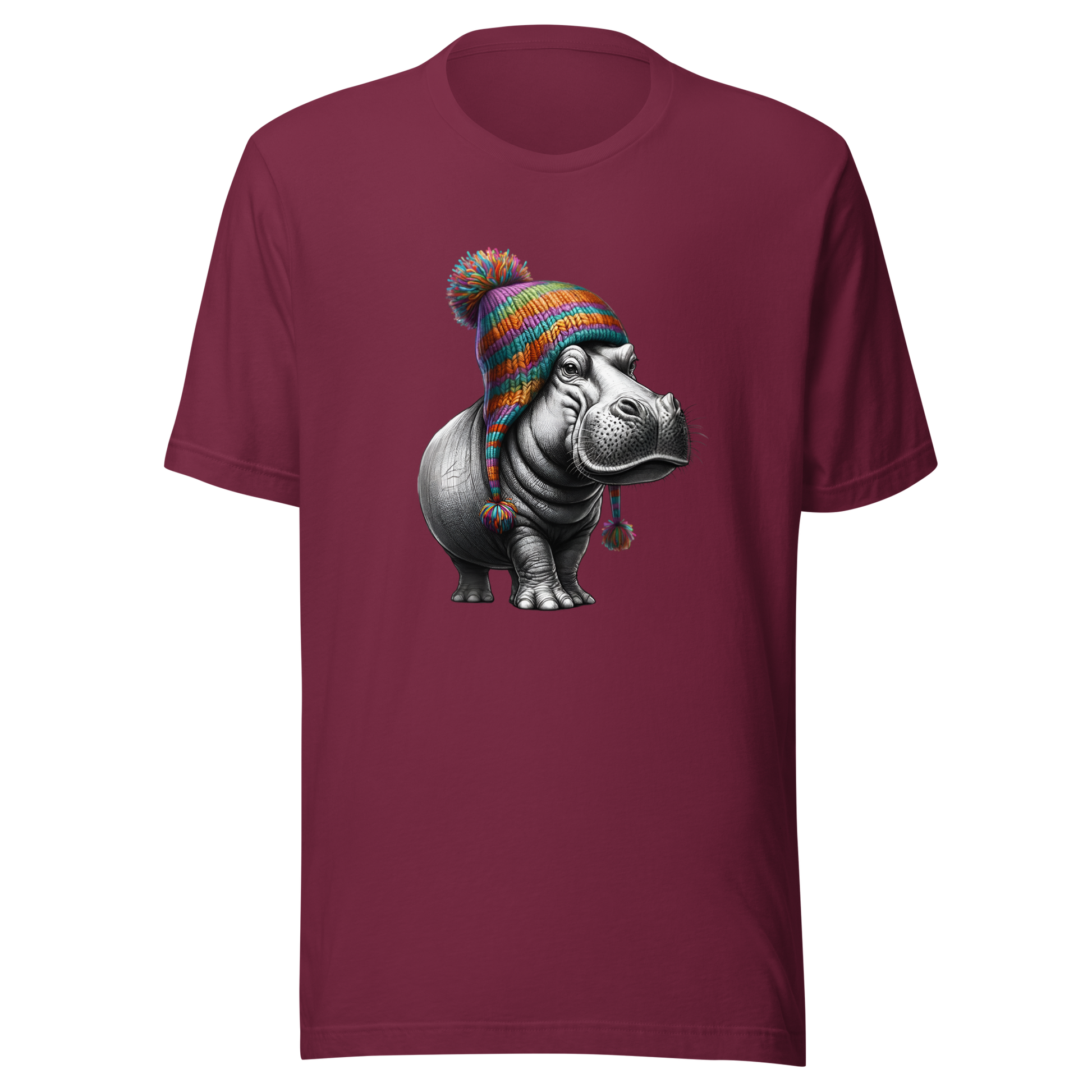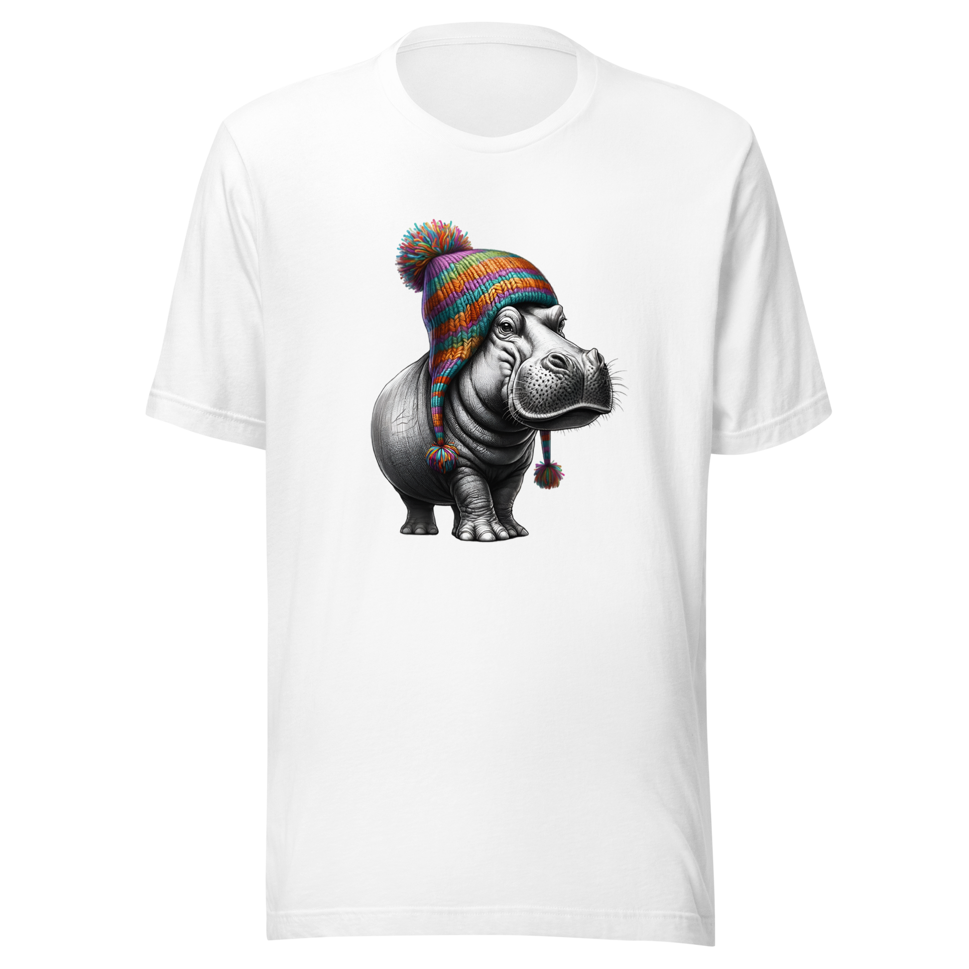 Unisex Novelty Hippo Graphic T-Shirt with Colorful Beanie