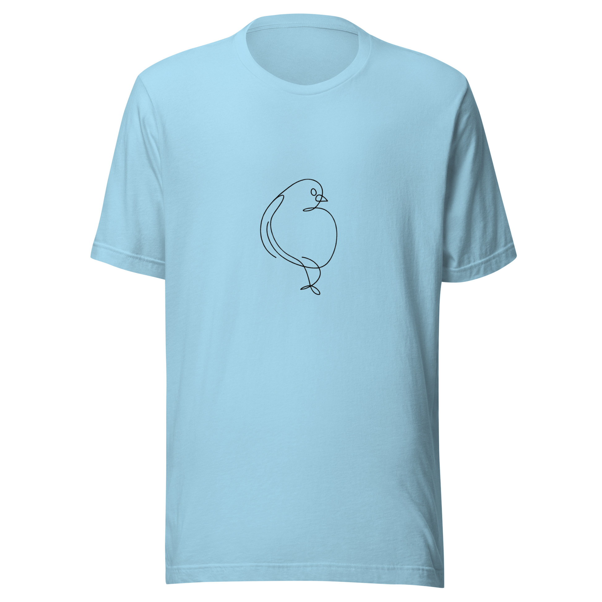 Unisex t-shirt with bird print. Flight of Fancy: Avian Artistry on a Line