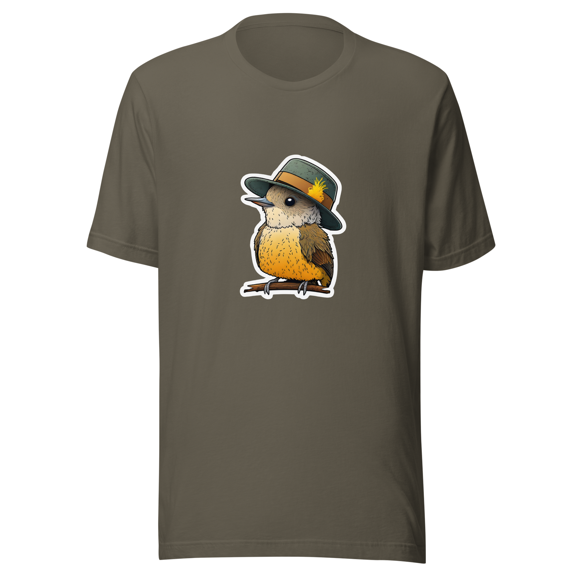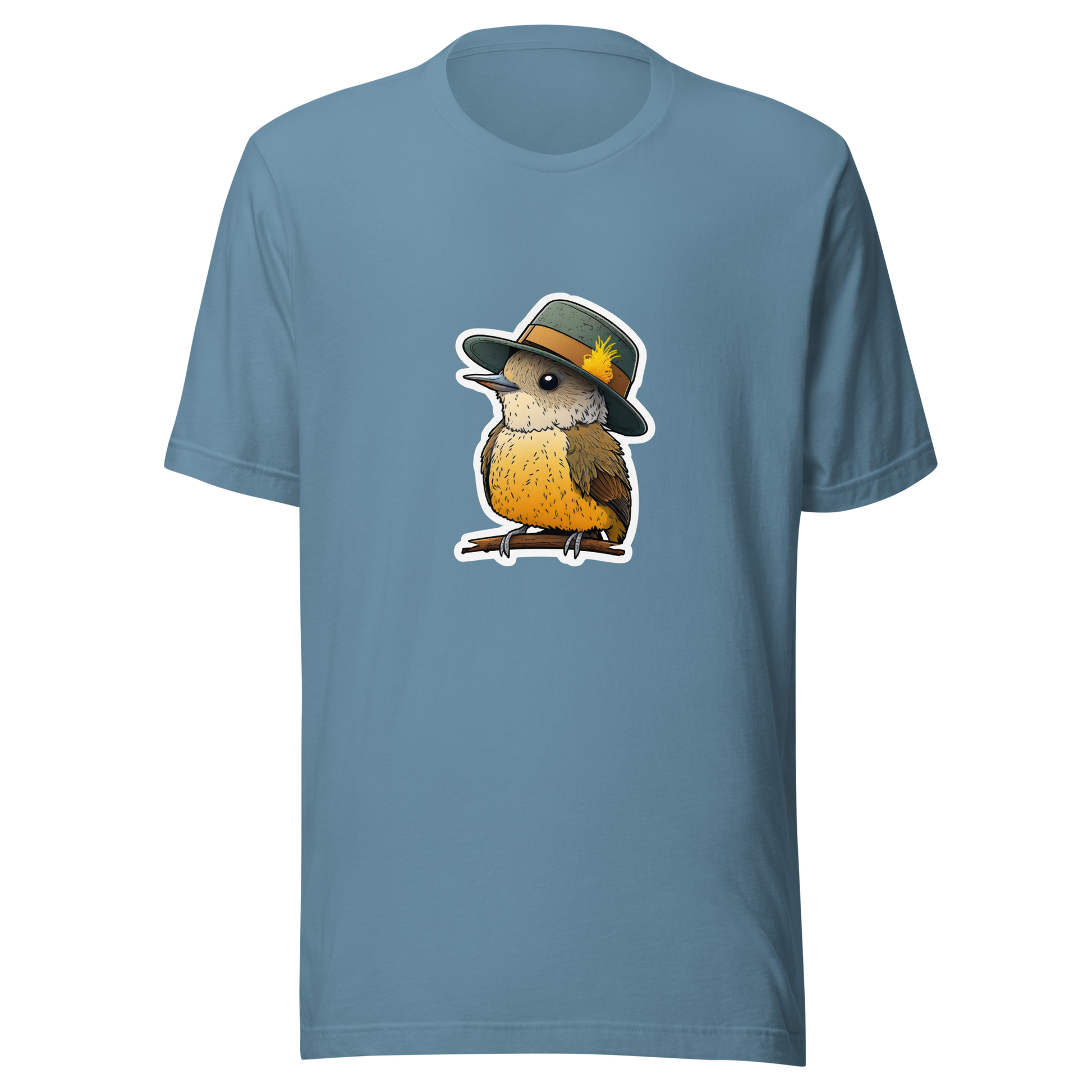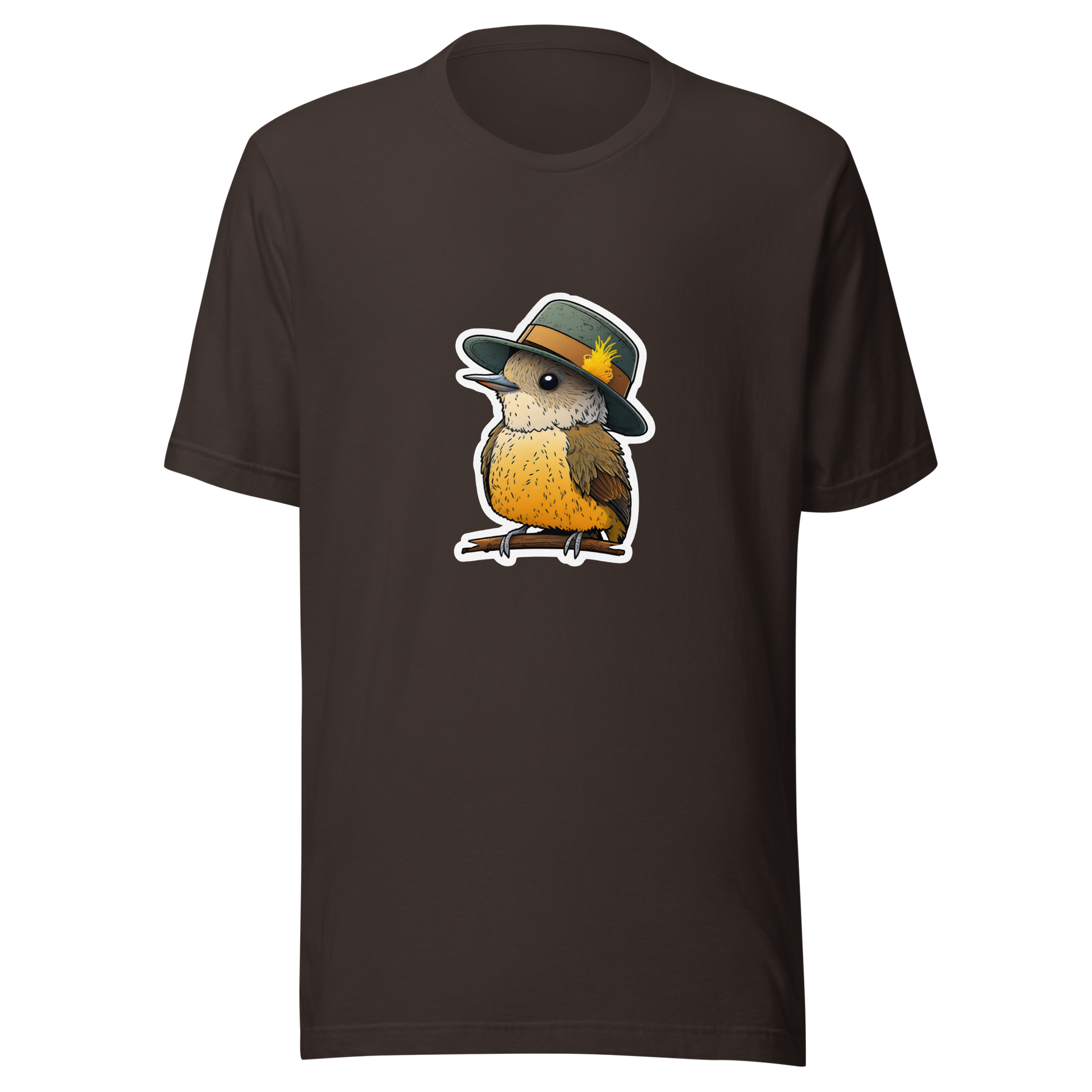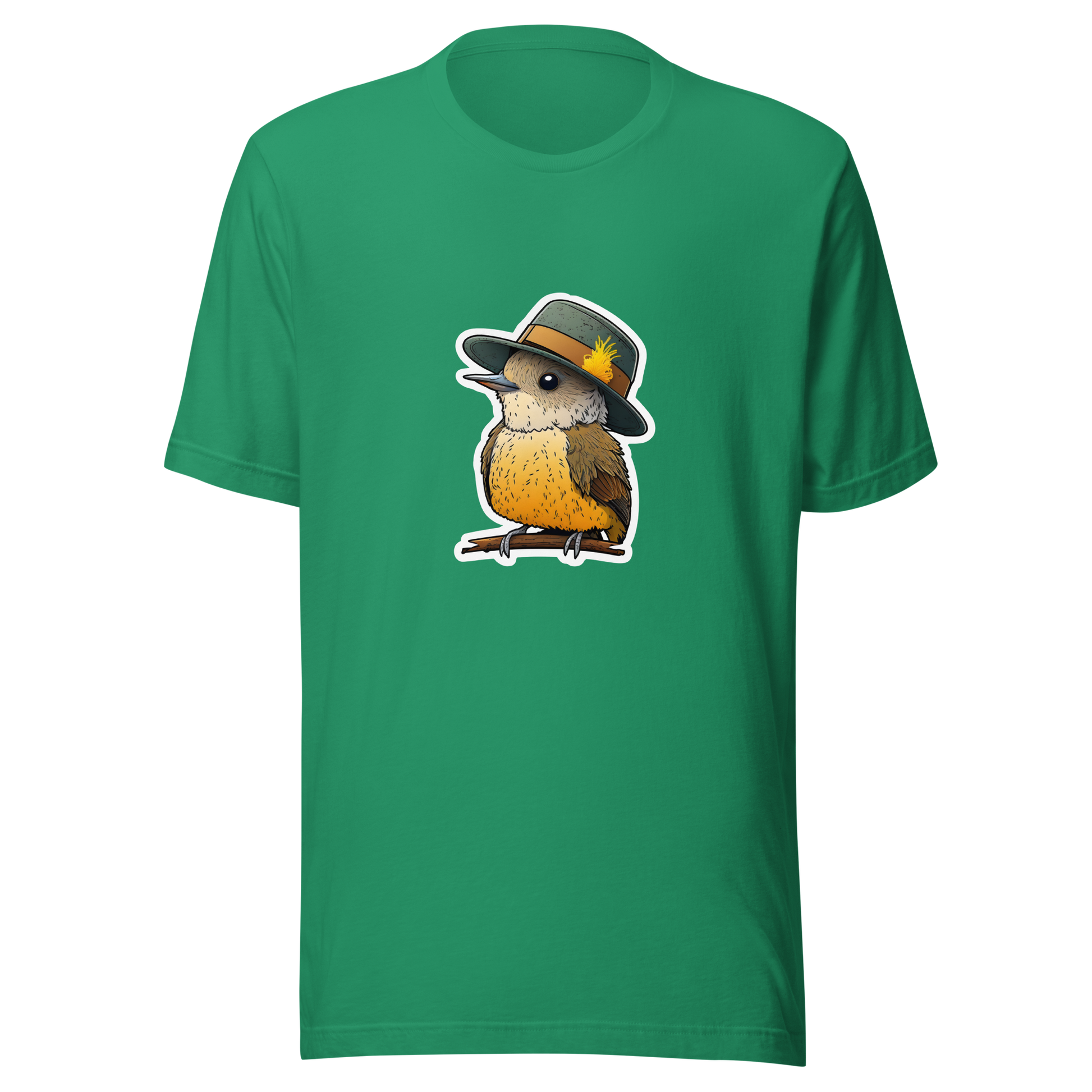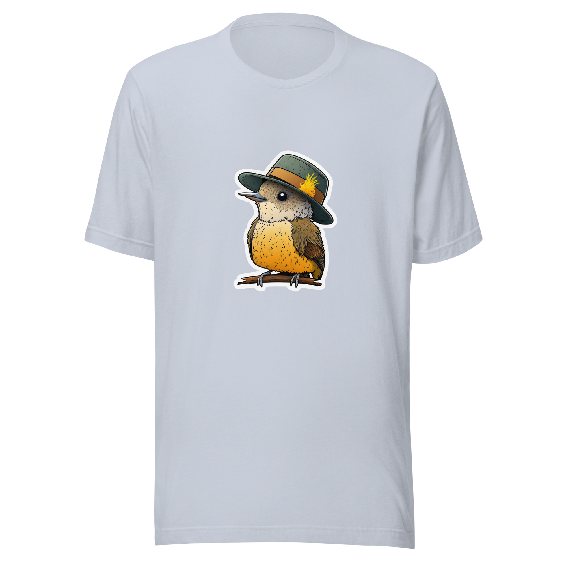 The T-Shirt with a cute bird in a hat is sure to bring a smile to your face and brighten up your day.