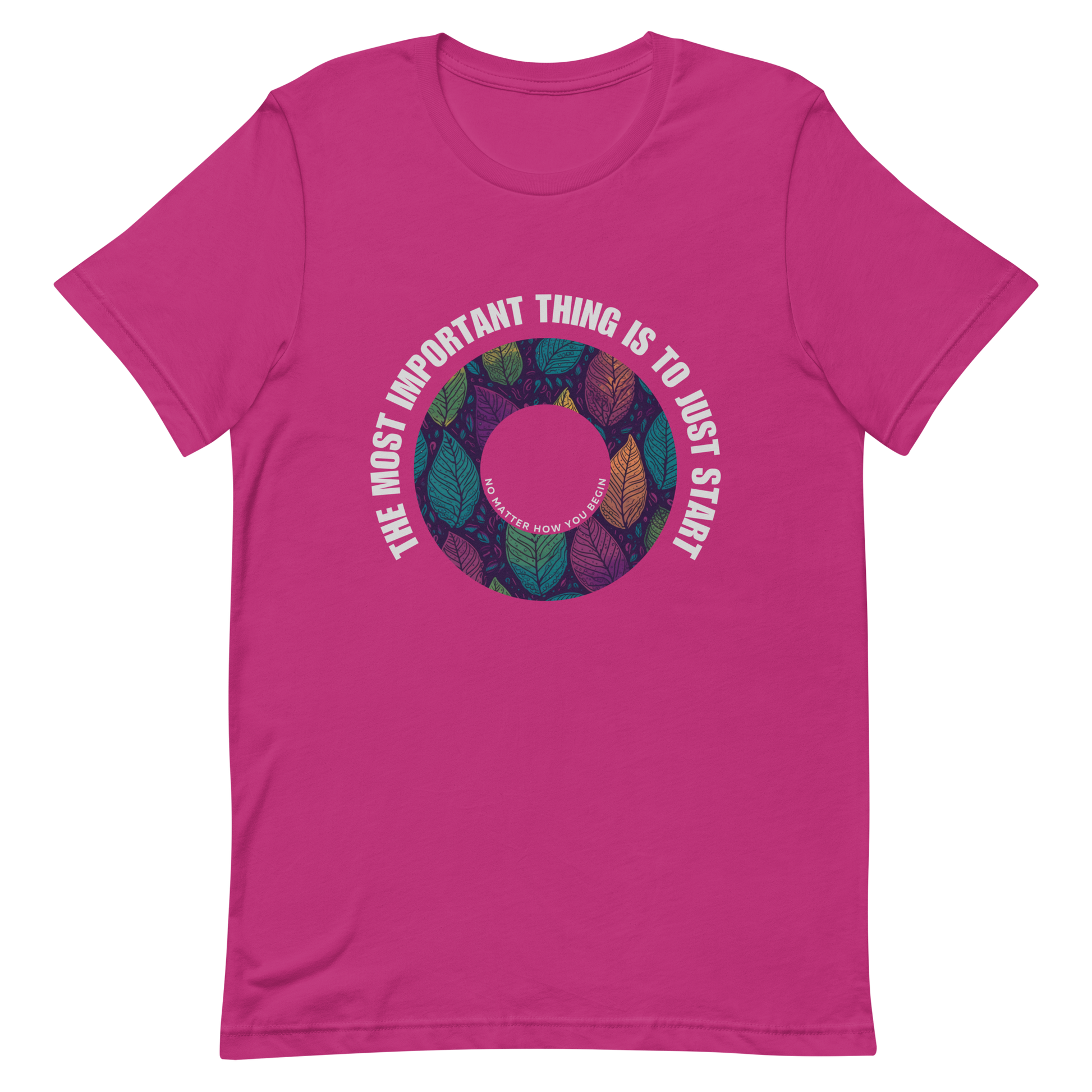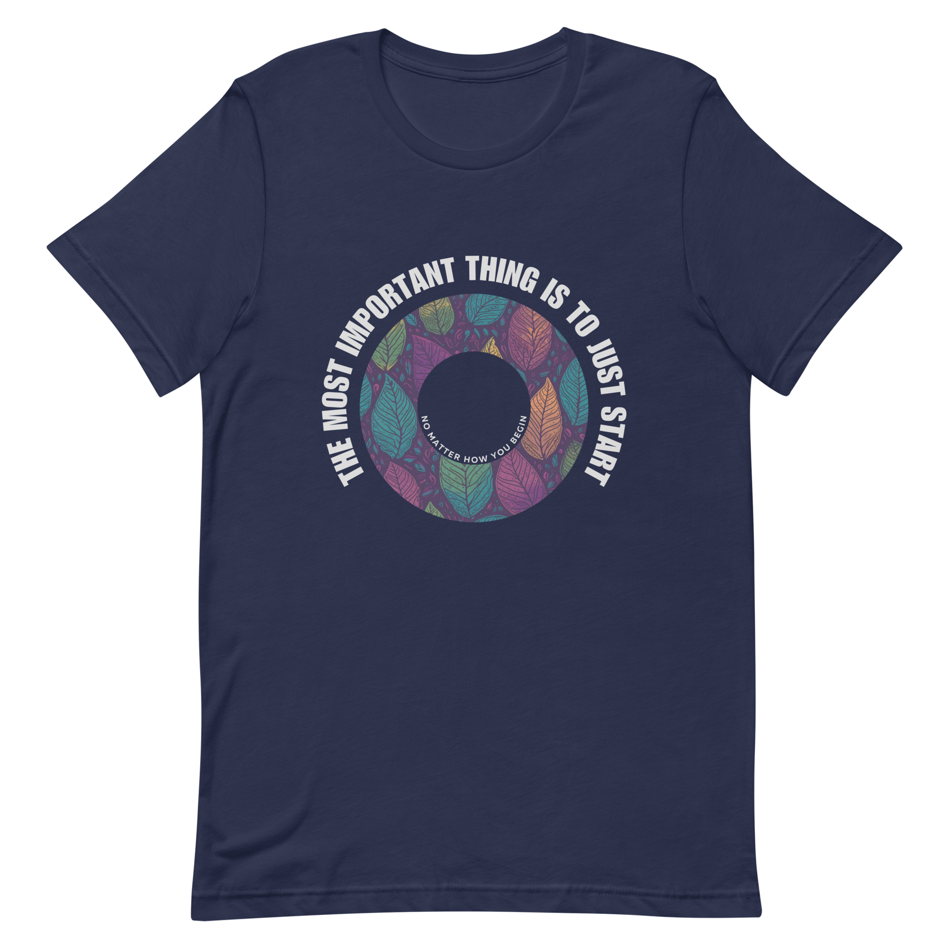 Unisex t-shirt with the words "The most important thing is to just start, no matter how you begin"