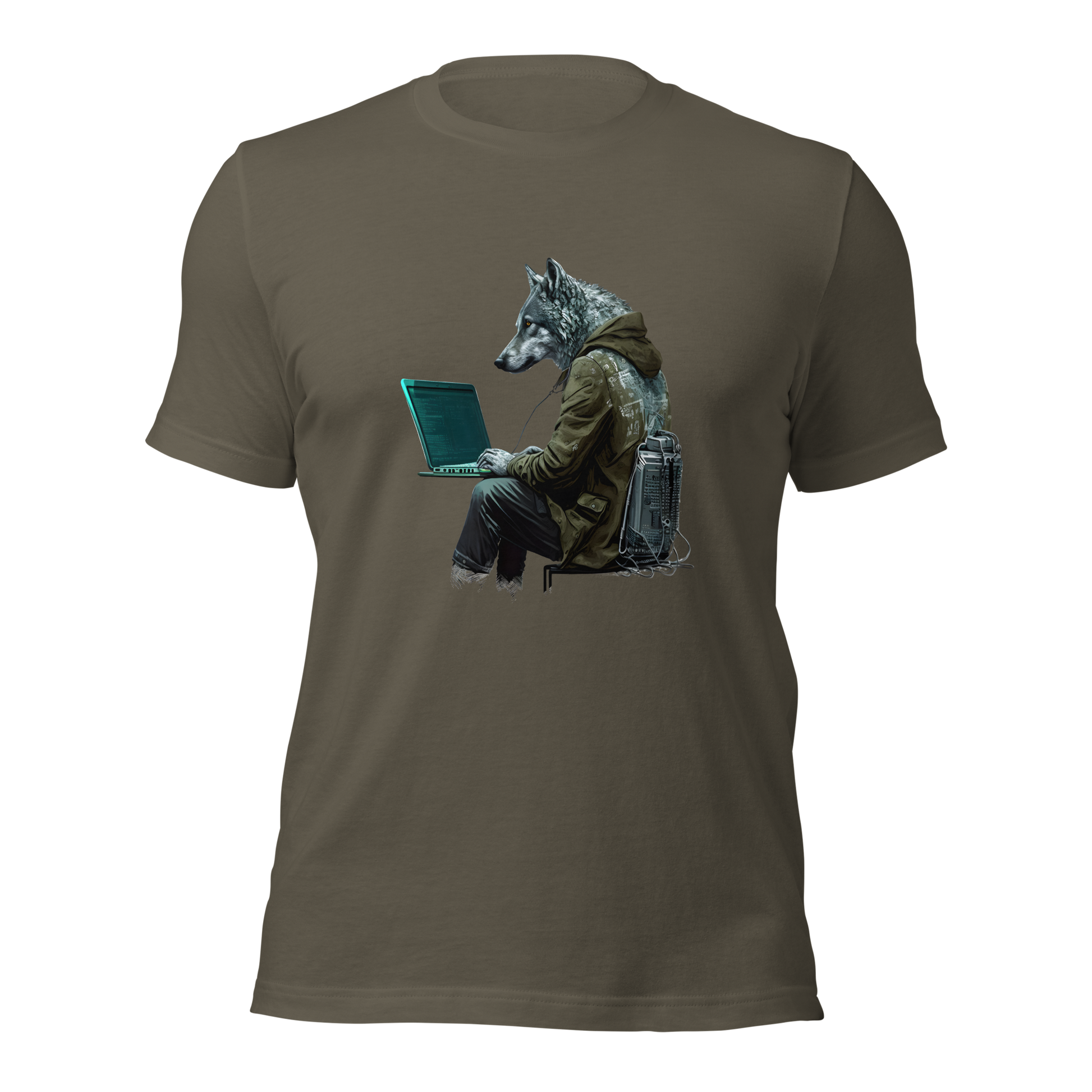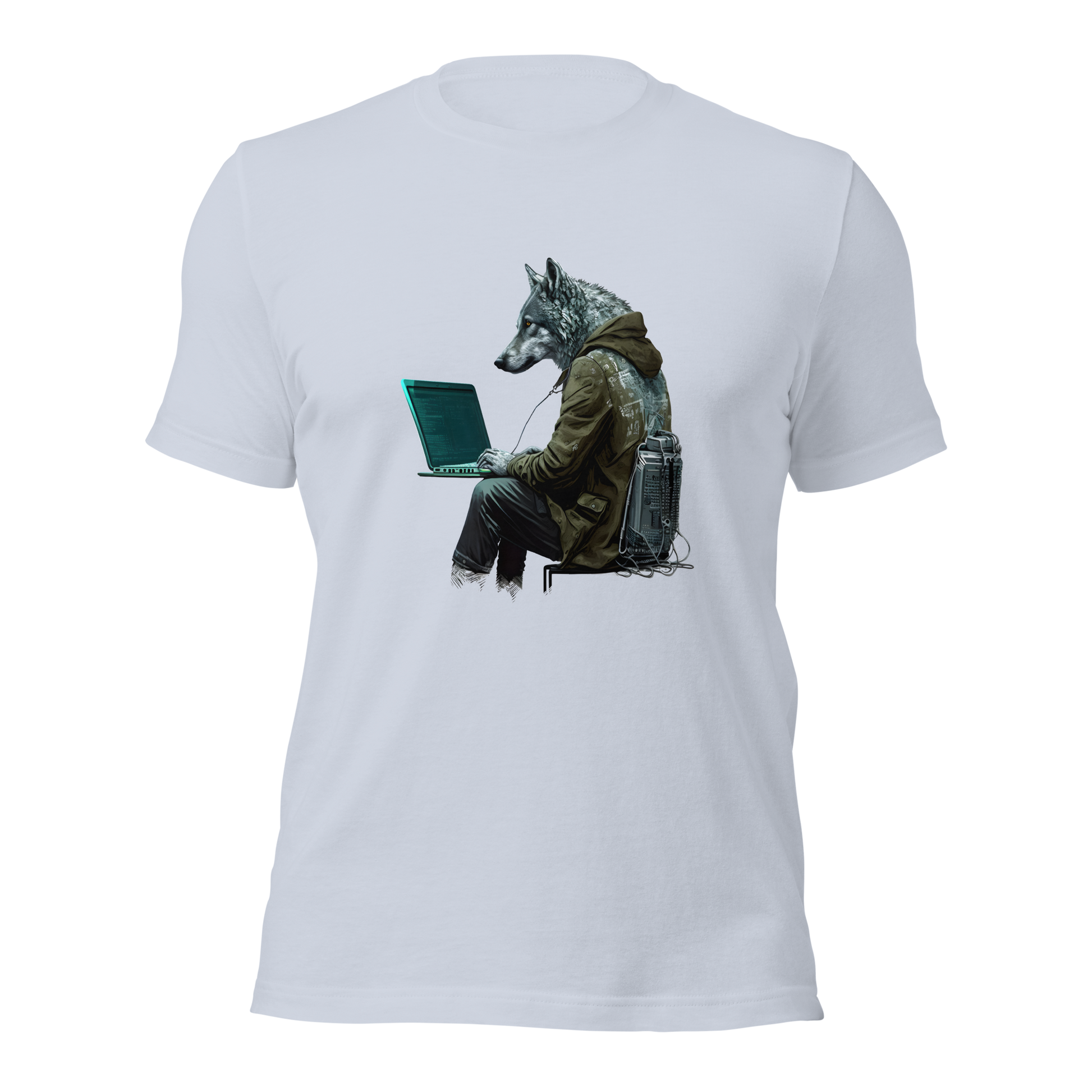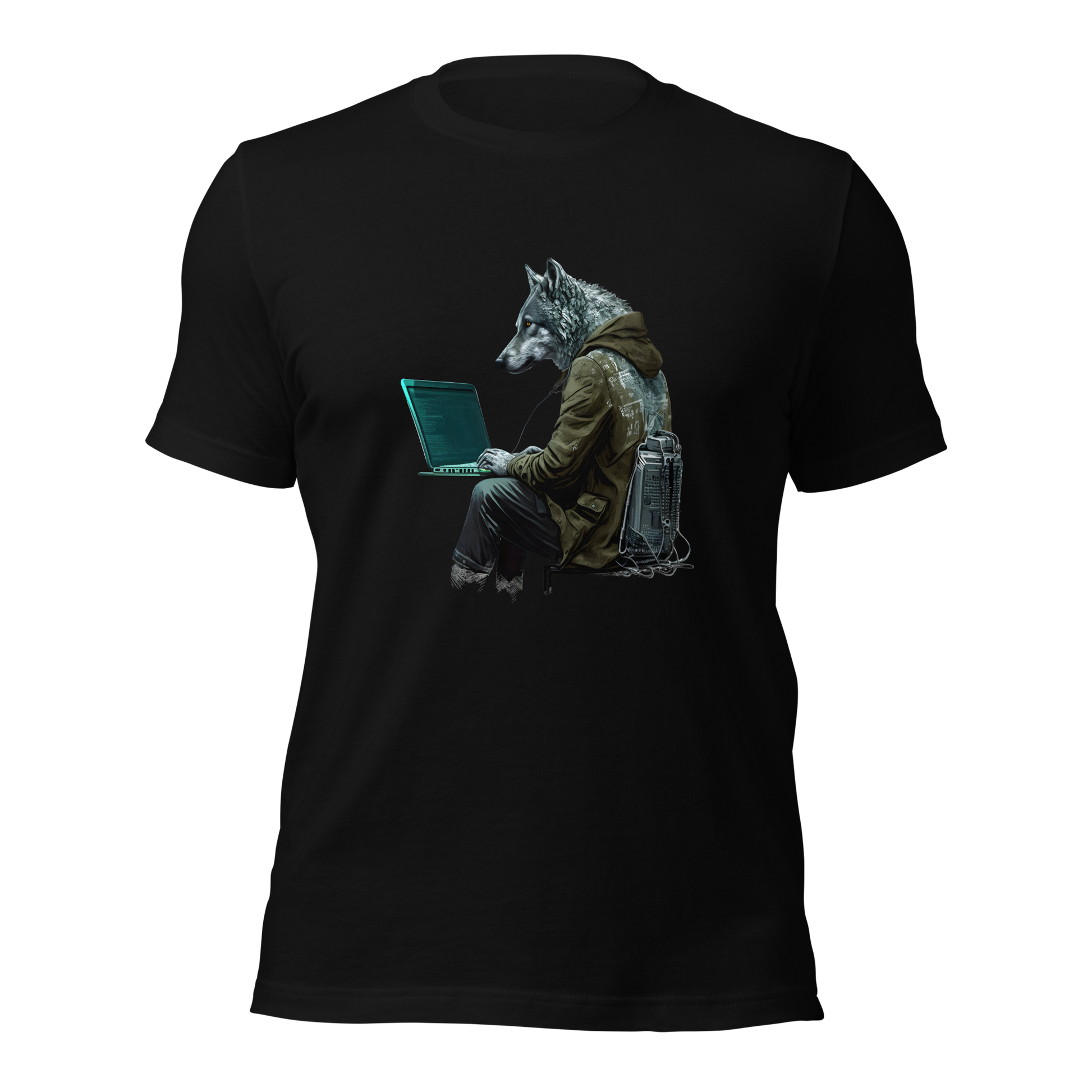 Unisex t-shirt with wolf-hacker, programmer